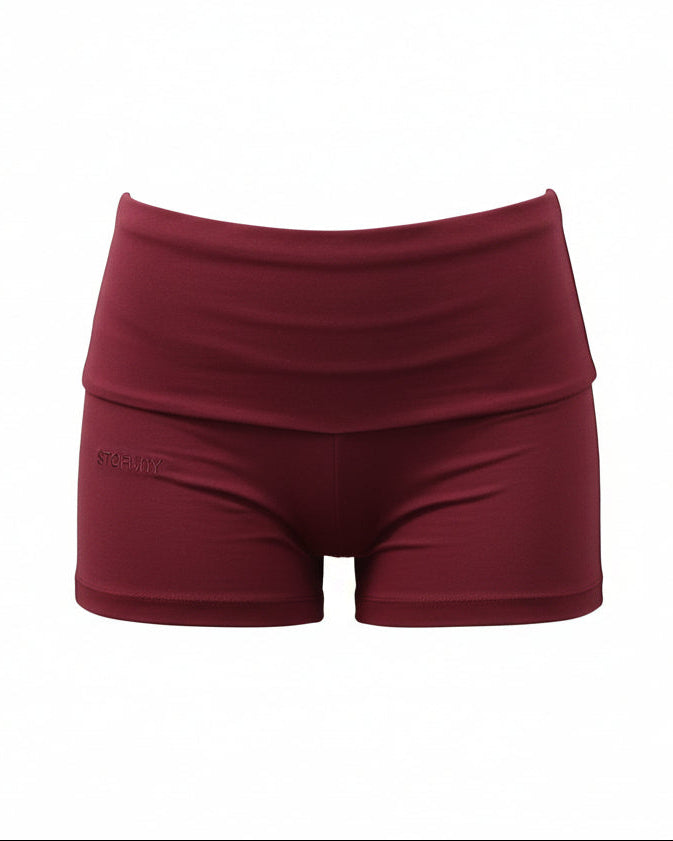 ava soft shorts - your effortlessly flattering foldover shorts for everywhere & anywhere. designed with a wide foldover waistband you can wear high or low, plus our subtle stormyy embroidery on the front leg for that signature touch.